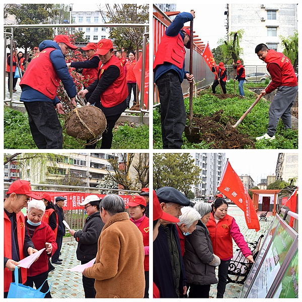 活動期間,廣大志愿者們在社區物業管理部門的指揮下,分工協作,相互幫助,挖坑、抬樹、扶樹、填坑、踩實、澆水…井然有序的為院區栽植樹木、播種花草,一個個臉上洋溢著春的笑容,活動場地周圍不知什么時候聚集了不少居民,為志愿者們喝彩,表示感謝;同時志愿者通過展板宣傳、講解等方式讓廣大居民職工了解垃圾分類的意義,了解各項生活垃圾的類別及明細,并呼吁人人參與,共建美麗社區環境;同時發放《美麗環境倡議書》,讓垃圾分類科普宣傳普及到每家每戶每人,讓人人知悉,人人熟悉垃圾分類的深遠意義,為共同創造一個美好生活環境和資源循環再生的社會盡一份力。