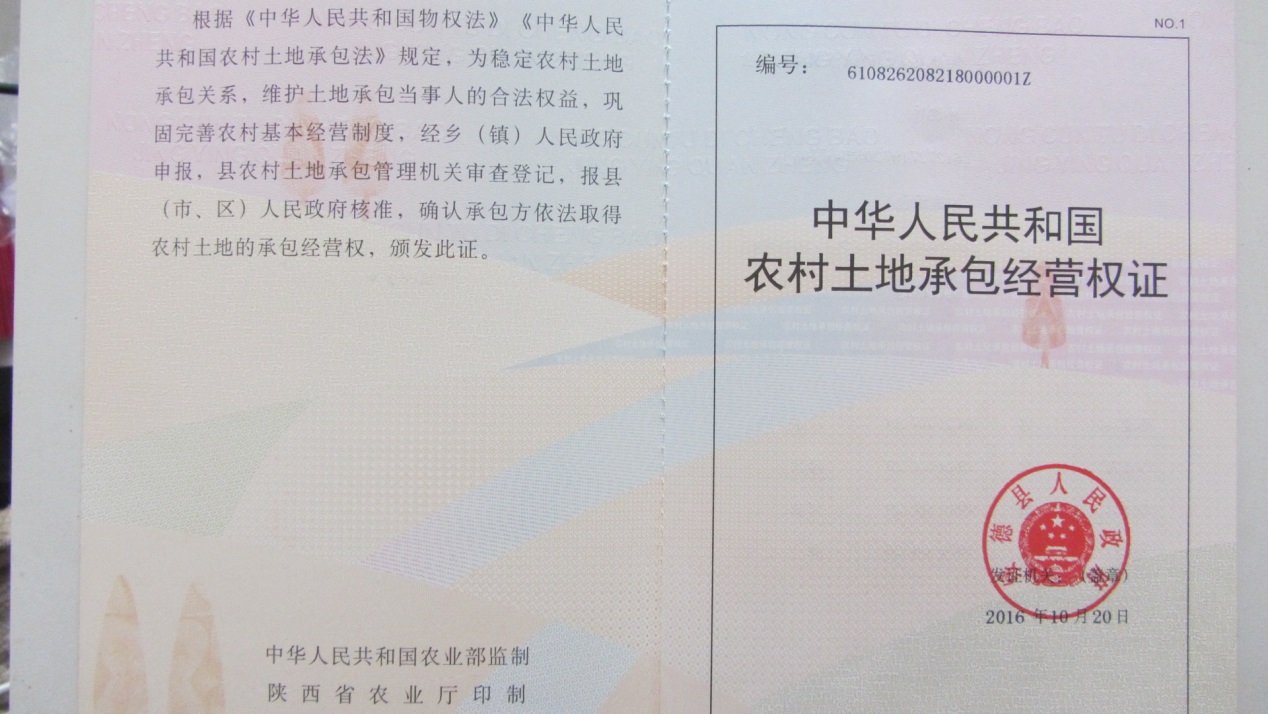 近日,隨著張家砭鎮(zhèn)穆家樓村編號(hào)為610826208218000001Z的《中華人民共和國(guó)農(nóng)村土地承包經(jīng)營(yíng)權(quán)證》打印,標(biāo)志著中陜核集團(tuán)二一四大隊(duì)有限公司承擔(dān)的綏德縣張家砭鎮(zhèn)和石家灣鎮(zhèn)確權(quán)工作已經(jīng)進(jìn)入到了最后的入庫(kù)、頒證階段。
