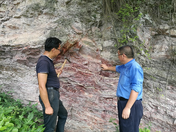 王義忠一行首先對野外地質露頭進行了實地查看、追索,并提出指導意見。