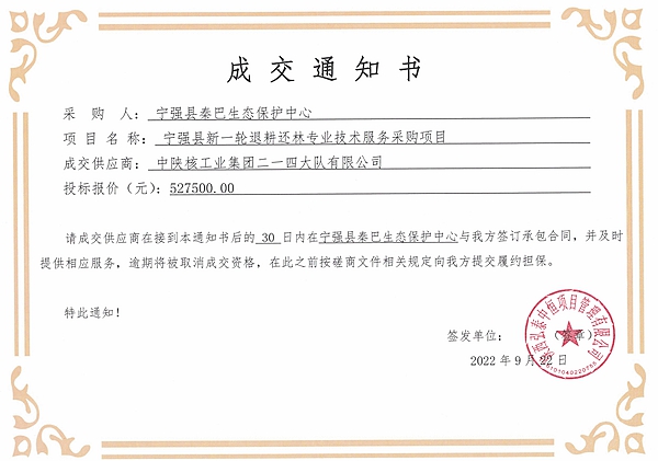 簡訊:公司成功中標《寧強縣新一輪退耕還林專業技術服務采購項目》